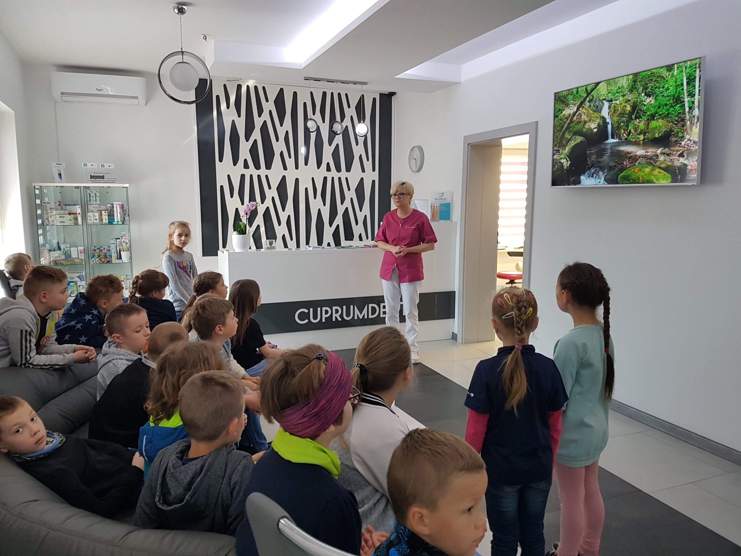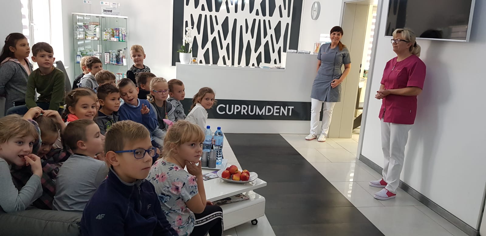 W tym dniu uczniowie I klasy Salezjańskiej Szkoły Podstawowej odwiedzili naszą przychodnię, by w praktyce zweryfikować wiedzę, którą zdobywali w szkole w ramach projektu „ Profilaktyka próchnicy zębów u dzieci”.